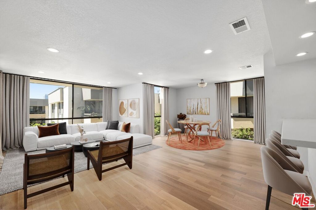 MAJOR PRICE ADJUSTMENT! A TRUE VALUE AND READY TO SELL AT UNDER MARKET. NOTHING BETTER ON THE MARKET FOR THE $$$. Seller to offer temporary interest rate buydown of 2% to qualified buyers. Completely and Beautifully remodeled single level Top Floor Corner location with 1,683sf. This bright Two Bedroom + Den/3rd Bedroom condo is ideally located in the museum area of the Miracle Mile. One block from LACMA. There is a large formal entry, fully remodeled eat-in kitchen with SS appliances, quartz counters, breakfast bar and designer tile plus large living room and dining area. An abundance of light streams in the large windows and sliding glass doors off the over-sized balcony. This top floor corner location allows for windows on two sides and there is only one common wall, providing privacy very much like a single family home. The large den could be used as a third bedroom, separate office or media. The over-sized primary bedroom with seating area has abundant closets including a walk-in. The remodeled well-designed primary bathroom features an oversized shower with custom tile & quartz countertop. The generous second bedroom is adjacent to the remodeled hall bath with custom tile shower. There are beautiful wide plank wood floors throughout the public spaces and in-unit washer dryer. This is an exceptional offering with plenty of closets, extra storage in the garage, side by side parking + 30 guest spaces in the gated community garage. Superb location in the middle of museum row, just steps from The Academy Museum, LACMA, and the Petersen Museum and minutes to The Grove, Beverly Center, and several fabulous restaurants and shops. This large floorplan feels like a home that could accommodate small or large family living. Condominiums of this size and quality are rare to find, and there are only 12 units in the building with this floorplan. The community features a large pool and spa with sunning area and onsite management. This is a true must see, if you are looking for a turnkey apartment in a great neighborhood and awesome price. Welcome Home!