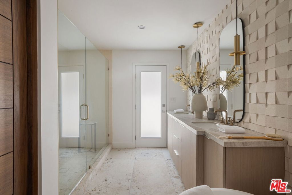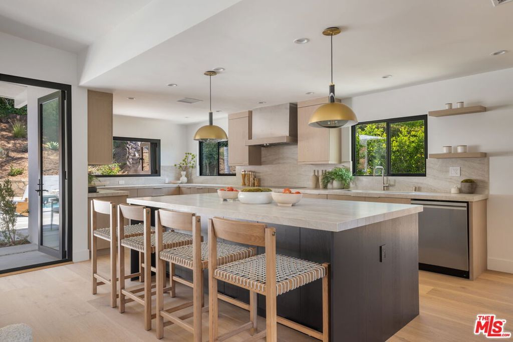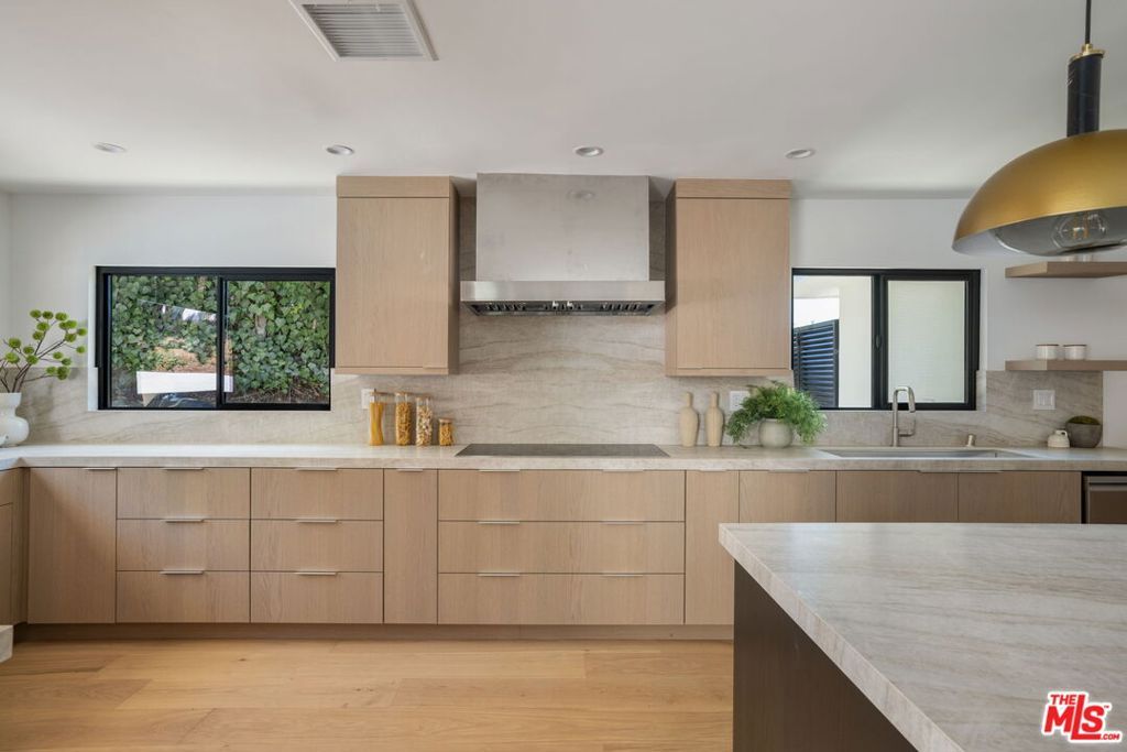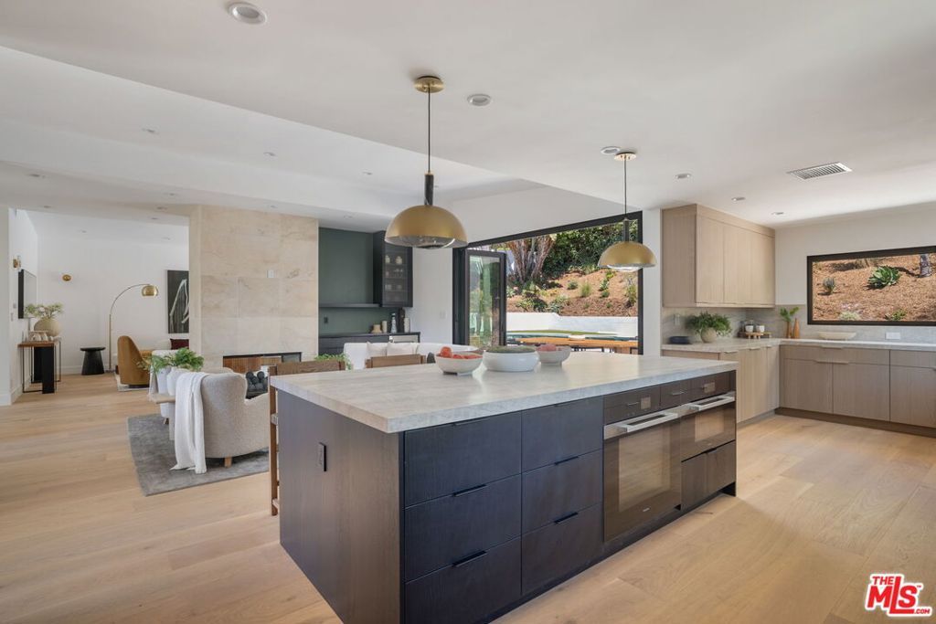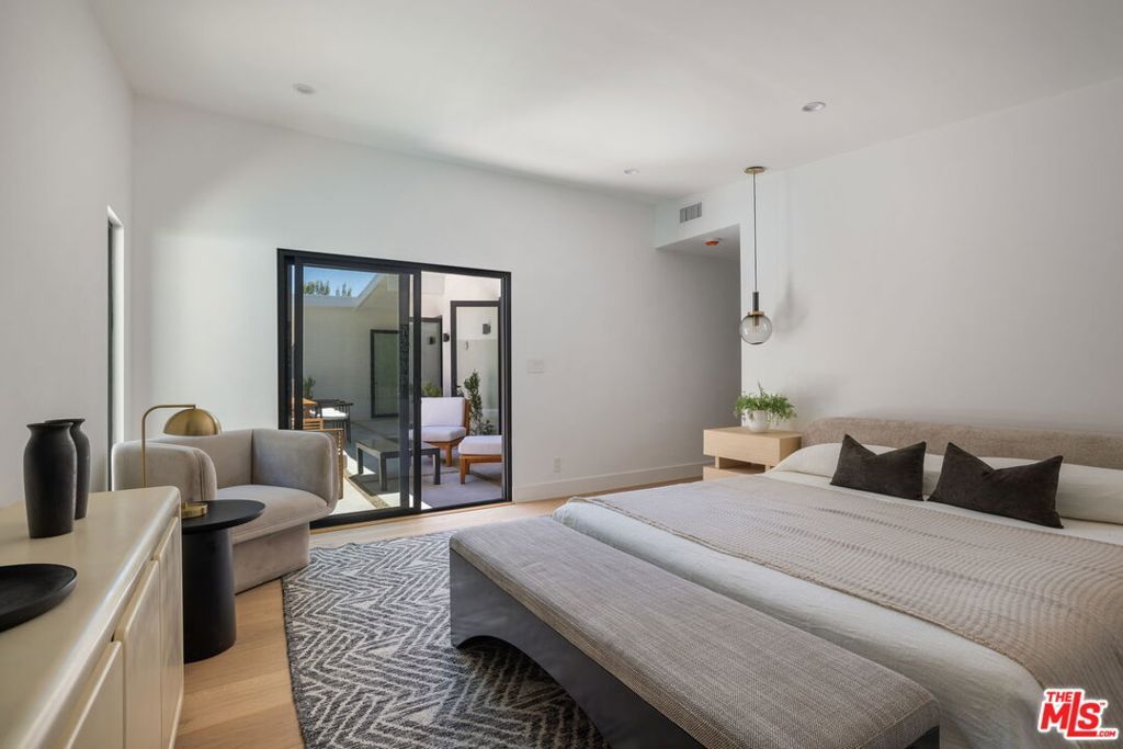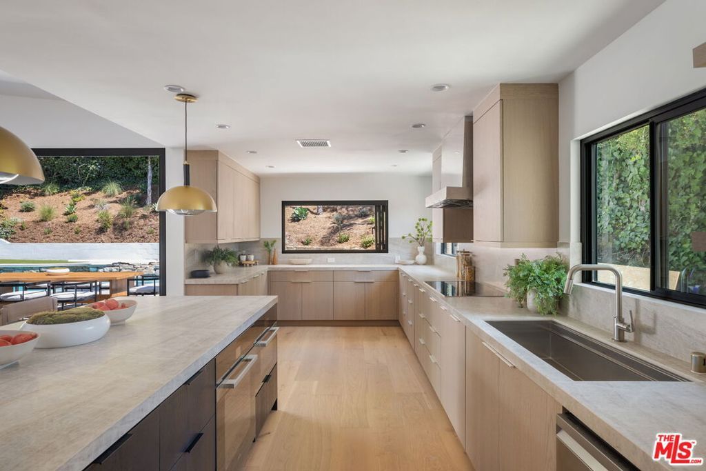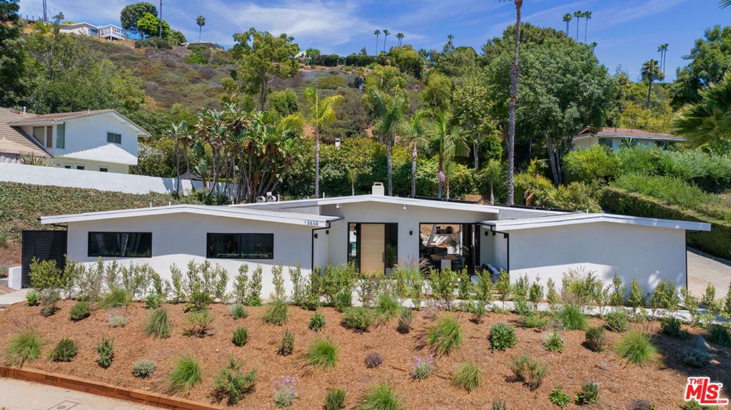 Brand new exceptional remodel of a circa 1963 Mid-Century, 13535 Bayliss Road evokes the relaxed sophistication of a pitch-perfect Palm Springs retreat in the heart of Brentwood. With modern architectural lines and an expansive single-story footprint, this sun-soaked residence blends the timeless integrity of Mid-Century Modern design with the elegance and comfort of modern luxury. Walls of folding glass doors frame views of the sparkling pool and greenery, transforming the home into a chill weekend getaway, perfect for lounging under the sun, dining al fresco, or evening gatherings under the stars. Inside, elegant materials meet luxury upgrades in a refined chef's kitchen with Miele appliances, custom cabinetry, and fine Italian porcelain center island and countertop surfaces. Airy primary retreat with ensuite bath accented with Cocci Sicilian Bianco stone, capturing the serenity of a resort-inspired spa. Secondary bedroom baths enhanced with terrazzo tile flooring, honoring the home's heritage. Inviting European white oak floors throughout the open living spaces. Select lighting by Viro and Aerin Lauder complete the interior spaces with a refined glow, shifting from bright and airy by day to soft and atmospheric by night. A rare opportunity to own an artfully designed Brentwood oasis offering unparalleled amenities and comfort in a private, serene setting.