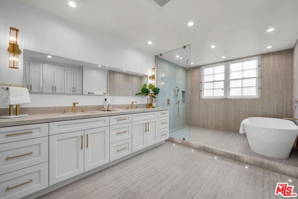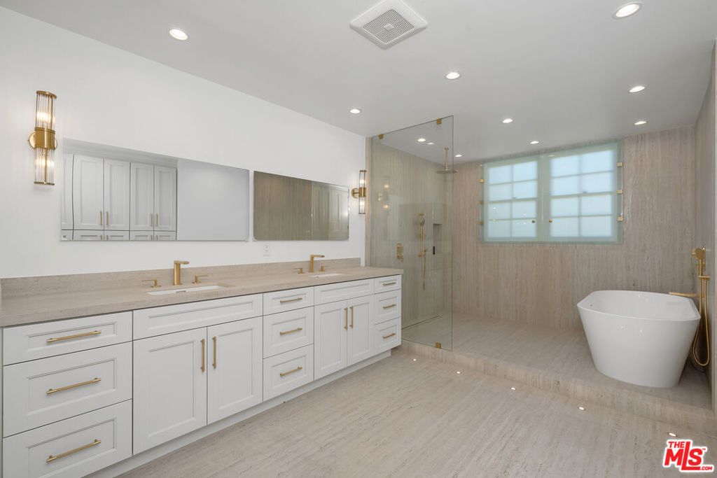 Extensively remodeled SMART home: three-bedroom, five-bathroom, plus housekeeper room and office. Just completed by the current owners for themselves, with no expense spared and every detail thoughtfully considered. Wonderful architecture, beautiful materials, and quality construction can be found in every corner. The open-concept layout highlights soaring double-height ceilings in the living room, enhanced by expansive windows that flood the space with natural light and offer tranquil canyon and mountain views. Designed for both entertaining and everyday comfort, the spacious living and dining areas flow effortlessly to a rear landscaped backyard. One en-suite bedroom is conveniently located on the main level, along with a flexible studio space featuring its own bathroom and direct access to the front patio. Upstairs, two luxurious suites await, including a primary retreat with a spa-inspired bathroom, soaking tub, generous closet space, and a separate private office. Two rooms have been added to the previous square footage. Residents enjoy access to resort-style amenities such as a community pool, spa, tennis courts, scenic hiking trails, and 24-hour security. The HOA provides comprehensive services including roof maintenance, exterior landscaping, barbecue areas, and full-time patrol along Canyonback Road.