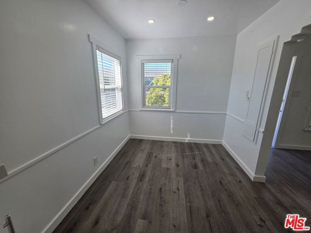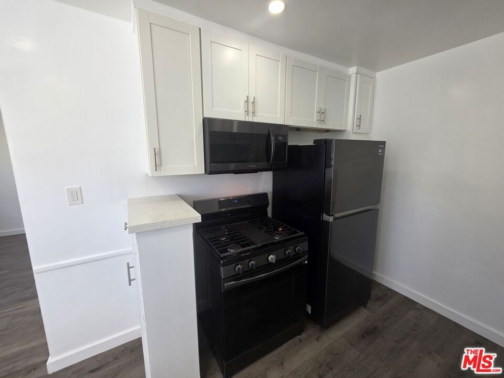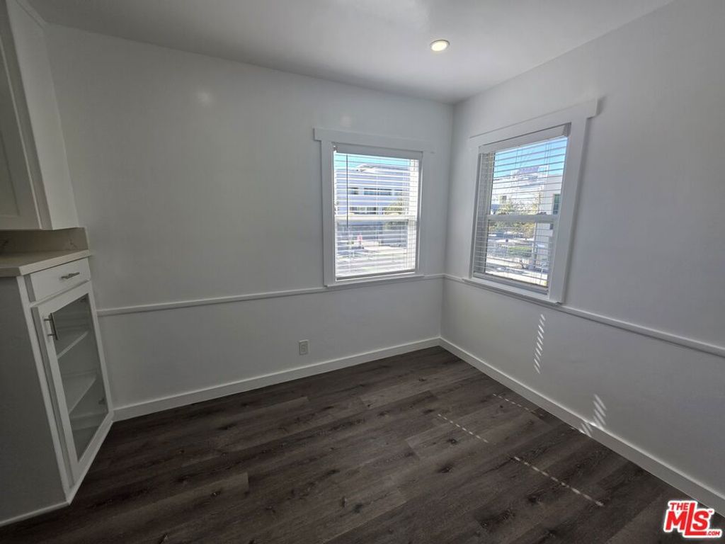 Experience the best of Santa Monica living in this beautifully remodeled top floor one bedroom one bathroom apartment located just minutes from the Santa Monica Pier, Venice Beach, the 10 Freeway, and countless local attractions. Inside, enjoy a fresh blend of modern style and classic charm with newly painted walls, newer hardwood style flooring, and plenty of natural light streaming through multiple windows, including a lovely view of a big green tree just outside the living room. Charming arched entryways add character while a wall heater provides cozy comfort. The updated kitchen features white shaker cabinets, sleek quartz countertops, black stainless steel appliances, and an eat in dining area perfect for daily meals or casual entertaining. The bedroom offers both a ceiling fan and window air conditioner for personalized comfort, and the in unit Bosch stacked washer and dryer provide premium convenience. Parking is available onsite and residents have access to a shared backyard ideal for outdoor relaxation or entertaining. Water is included in the rent while tenants cover electricity, gas, cable, and internet. With only one shared wall and an abundance of natural light throughout, this inviting apartment is available now and offers an exceptional opportunity to live in one of Santa Monica's most desirable neighborhoods. Schedule your private tour today.
