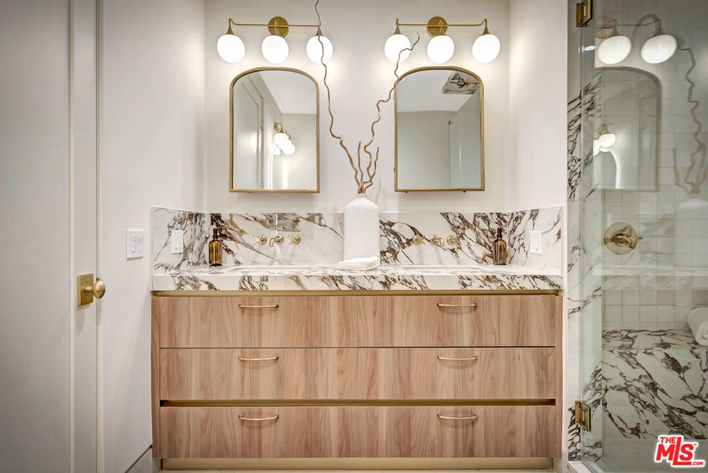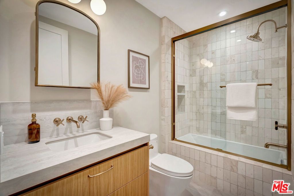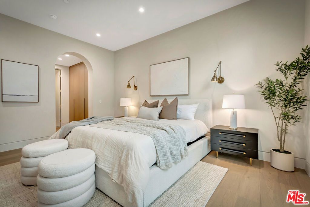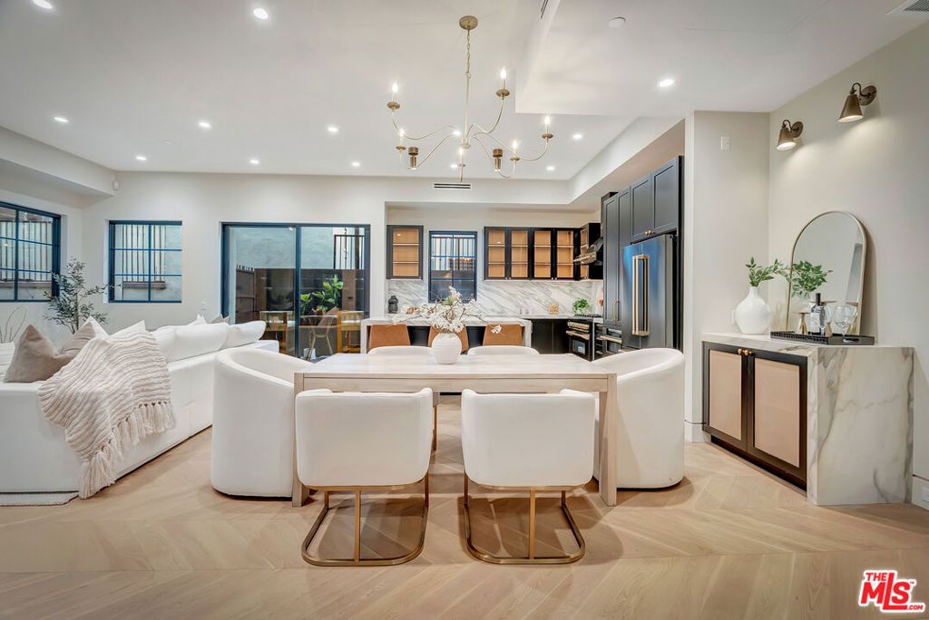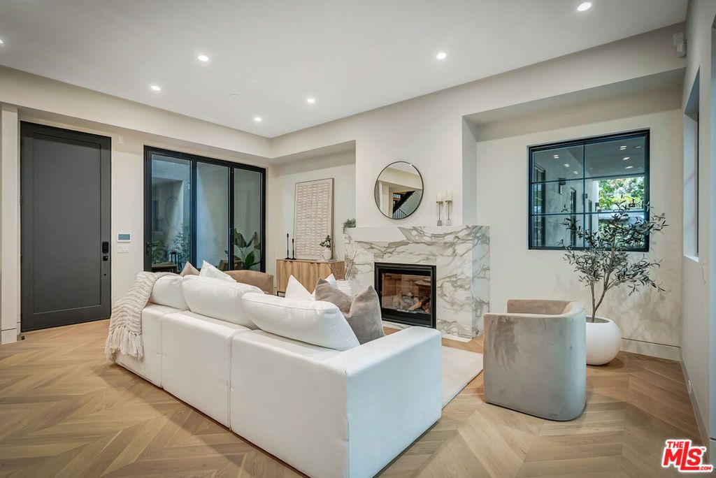 Introducing a NEWLY CONSTRUCTED contemporary/modern townhouse (2025), ideally positioned on one of West Hollywood's most sought-after streets. This exceptional residence embodies a refined blend of timeless architectural design, elevated finishes, and modern luxury living, offering approximately 1,862 sq ft of thoughtfully curated living space. This private, gated home features 3 spacious bedrooms and 2.5 impeccably designed bathrooms. A dramatic foyer opens to a sprawling, light-filled open-concept floor plan designed to maximize natural light and volume. Soaring ceilings and expansive picture windows define the main living areas, where formal living and dining spaces are enhanced by sophisticated architectural details, ideal for both intimate gatherings and grand-scale entertaining with a wine closet, fireplace. At the heart of the home lies a state-of-the-art chef's kitchen, showcasing custom cabinetry, a sleek waterfall-edge island, premium appliances, and designer fixtures that deliver both culinary excellence and striking visual appeal. The second level hosts three beautifully appointed bedrooms and two luxurious bathrooms, each finished with bespoke materials. The primary suite serves as a true sanctuary, featuring dual vanities, an oversized walk-in shower, and a custom dressing room/closet with high-end built-ins and a fireplace. The rooftop deck elevates outdoor living with city views, creating the perfect backdrop for al fresco dining, morning coffee, or evening relaxation. Additional highlights include designer lighting, two side-by-side parking spaces in a gated garage with an EV charger, large dedicated storage, an in-unit laundry area, and paid solar panels. This turnkey modern masterpiece offers sophistication, comfort, and privacy-just moments from the finest shopping, dining, and amenities West Hollywood has to offer. Monthly HOA dues cover water and gardening. A truly exceptional offering in one of the city's premier locations. AN ABSOLUTE MUST-SEE.