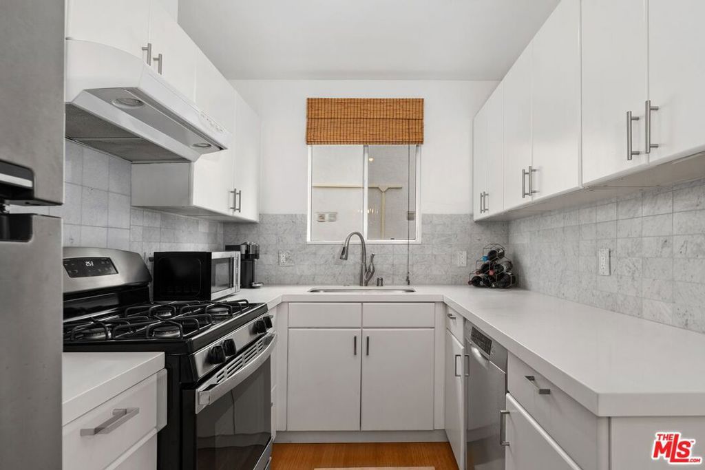 Set just three blocks from the beach in Santa Monica's most coveted and walkable neighborhood, Ocean Park, this chic, designer one-bedroom, one-bath residence delivers the quintessential coastal lifestyle with refined modern style. The home is anchored by a newly renovated modern bathroom, finished with sleek contemporary details, and a pristine white kitchen featuring stainless steel appliances and clean, timeless lines, perfect for both everyday living and entertaining. The open layout is airy and flooded with light, creating a seamless flow from living space to balcony. Wake up to serene bedroom views of the Santa Monica Mountains, slide open your double pane sliding glass doors and unwind on your private balcony with a partial ocean view, conveniently located on the same floor as the building's expansive roof deck. From there, enjoy 180-degree panoramic vistas of the ocean, city skyline, and surrounding mountains, ideal for sunsets, morning coffee, or evening gatherings. Additional highlights include: two dedicated parking spaces, spacious private storage unit, laundry room on site, plus space to add laundry inside the unit, and a gated, well-maintained building with a relaxed coastal feel. Just moments from the sand, Main Street cafes, top dining destinations, boutiques, and everyday essentials, this home offers the rare combination of location, views, and turnkey design. A true Ocean Park gem - stylish, serene, and effortlessly coastal.