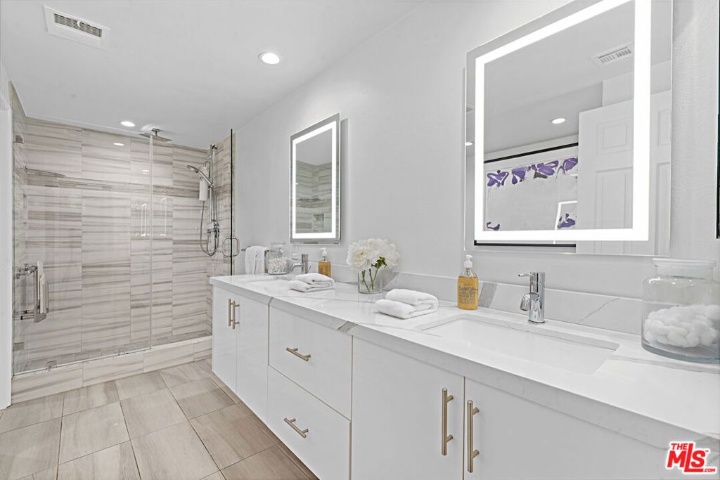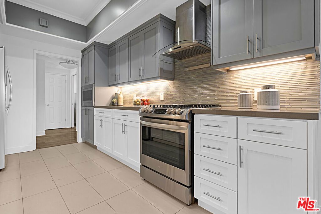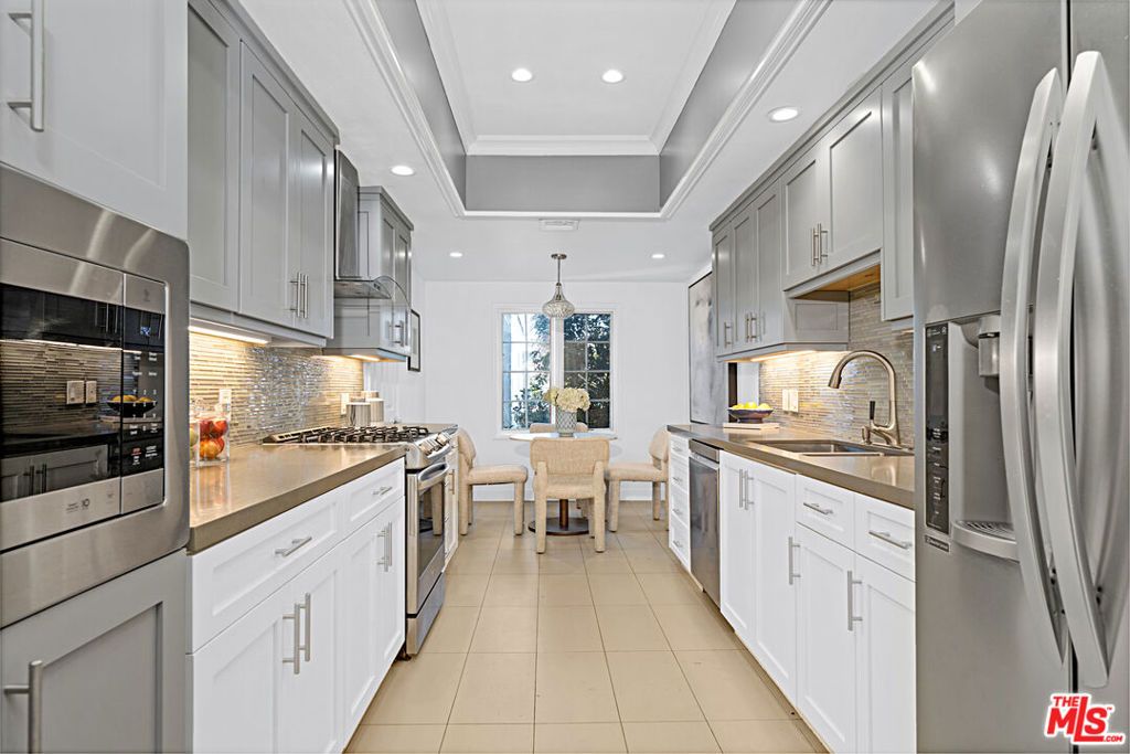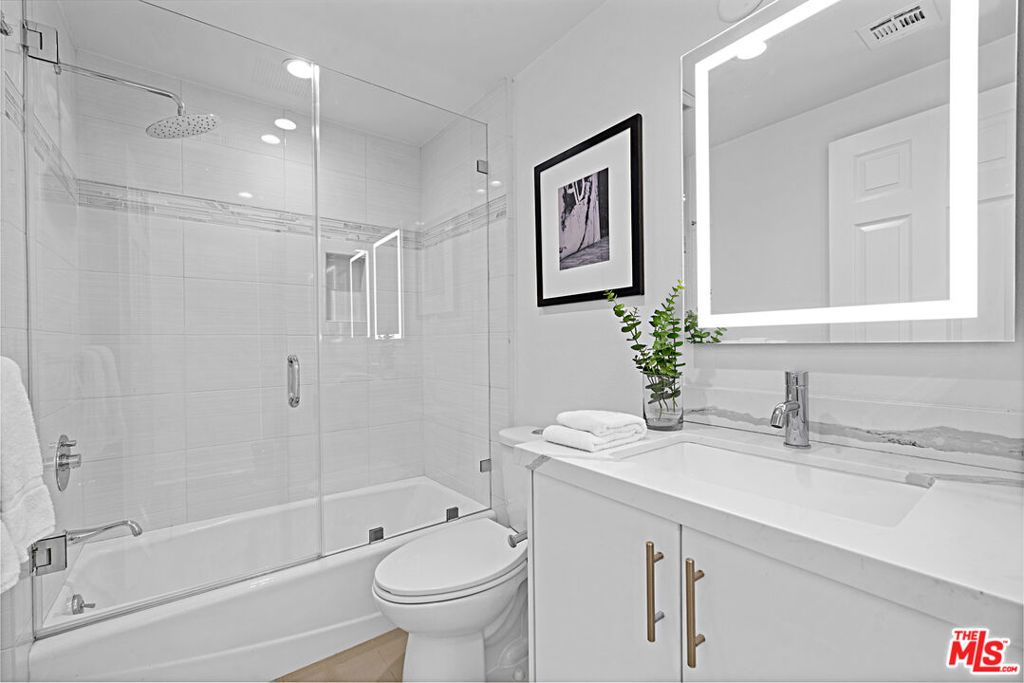 Welcome to this beautiful condominium, thoughtfully designed for a lifestyle of comfort and sophistication, ideally located in the heart of Westwood. A double-door entry sets the tone as you step into a bright, open-concept layout that flows seamlessly between the living and dining areas, perfect for both everyday living and entertaining. Floor-to-ceiling windows bathe the space in natural light, while a cozy fireplace and built-in bar add warmth and character. Enjoy indoor-outdoor living with a private balcony accessible from both the living room and kitchen, ideal for morning coffee or evening relaxation. The breakfast nook is perfect for casual meals, while the formal dining area provides an inviting setting for intimate dinners or elegant gatherings. The primary suite is a true retreat, featuring two walk-in closets and a luxurious marble en-suite bathroom with a spa-style shower and separate soaking tub. The spacious second bedroom also offers an updated full en-suite bathroom, providing comfort and privacy for guests or family. Additional highlights include a guest powder room, in-unit side-by-side laundry, central HVAC, and two secured side-by-side gated parking spaces, along with ample guest parking. Large pride storage in the lower level. The HOA covers earthquake insurance, building maintenance, water, and trash. All of this is located within a well-maintained building, just moments from UCLA, Westwood Village, and Century City offering the best of Westside living.