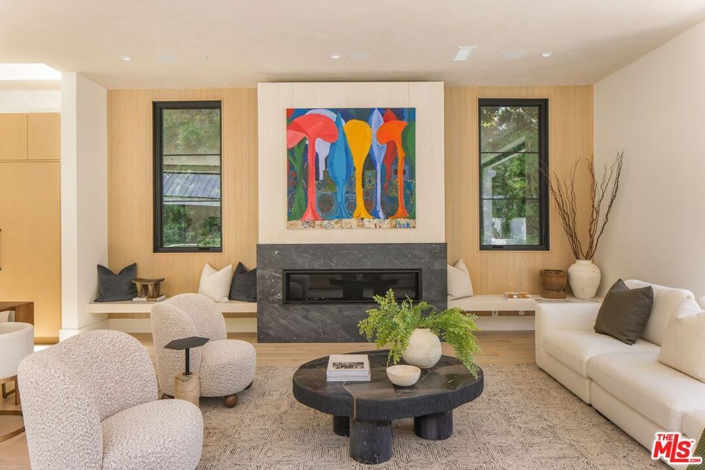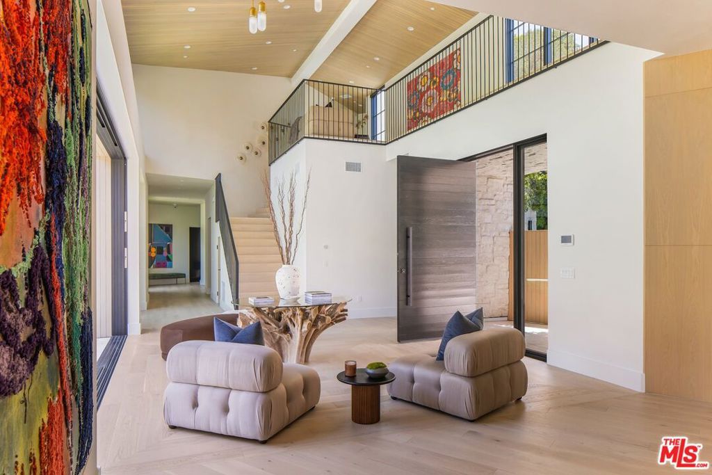 Nestled at the end of a quiet cul-de-sac on a tranquil lane just off the first block of lower Mandeville Canyon, this brand-new construction Modernist Farmhouse blends architectural sophistication with refined, organic design. Set on an expansive 18,000 square foot lot, this estate offers unparalleled privacy and sophistication in one of Brentwood's most coveted neighborhoods. Crafted with meticulous attention to detail, the home's handsome stone cladding and light wood accents seamlessly blend natural textures with contemporary design. A soaring two-story entry with exceptional volume welcomes you into a natural light-filled oasis, thoughtfully designed for both entertaining and everyday living. At the heart of the residence is an expansive great room with artisanal Roman clay ceiling, handsome Black Taj marble slab fireplace, and walls of pocketing Fleetwood glass doors leading to a resort-style backyard with elegant cabana and sparkling pool. Chef's kitchen with Calacatta Aella marble finishes, state-of-the-art Sub-Zero and Wolf appliances, and an open-concept layout that ensures a seamless flow between the great room and formal dining room. Primary suite aerie with vaulted ceiling and elegant spa-inspired bathroom. Three additional bedroom suites up, each with luxurious baths showcasing Misterio marble finishes. Sophisticated downstairs powder room with artful, minimalist raked stucco walls. Captain of Industry office. Spacious state-of-the-art screening room delivers a cinematic experience, while the Control4 smart home automation and built-in surround sound ensure effortless control of lighting, climate, security cameras, and entertainment. Expansive walls bathed in diffused natural light for a serious art collection. A singular, Brentwood estate blending glamorous indoor/outdoor living, comfort, and unparalleled amenities.