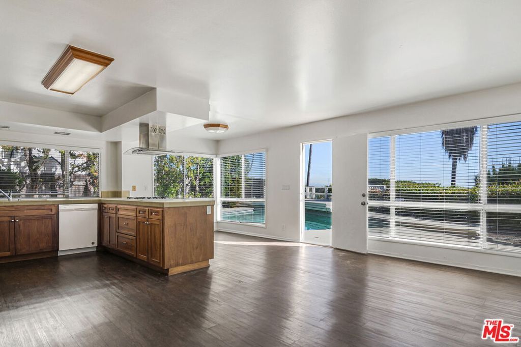 Spectacular ocean, city, and canyon views compliment this bright, open 4-bedroom, 3-bath home and backyard with a pool. A dramatic two-story entry welcomes you into the home. A spacious living room with fireplace and adjoining dining area capture the stunning views. The spacious kitchen features a large eat-in area, direct access to the three car garage and the backyard. The layout is ideal for everyday living and entertaining. To the right of the front door is a palatial office/den finished with gorgeous built-ins. The den/office is conveniently located to the right of the entrance of the home providing a private and quiet space for work and client meetings. The office/den may easily be converted to a 5th bedroom. Ample closet space and a powder room complete the first floor. Upstairs, the primary suite features panoramic views in a peaceful retreat-like setting with built-ins and plenty of closet space including a walk-in closet. Three additional bedrooms and another full bath provide space for family, guests or more offices. Outside, a generous patio, deck, and pool are positioned perfectly to take advantage of the sweeping ocean views to Catalina and beyond. This home offers tranquility and privacy minutes from Sunset Boulevard. The perfect setting for living and entertaining in one of Brentwood's most desirable neighborhoods. Located near top public and private schools, restaurants, the ocean, hiking trails, biking trails, downtown and LAX. This remarkable property combines a light filled home, pool, and stunning views, all in a prime Brentwood location, truly paradise in the middle of the City. Contact the listing agent for a private showing. Do not disturb occupants.