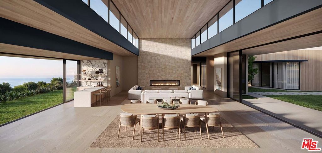 Hidden behind stone walls within the ultra-exclusive MariSol Malibu enclave, 11624 Ellice Street is a stunning new construction coastal estate that redefines contemporary luxury through stellar, breathtaking design, craftsmanship, and privacy. Created by acclaimed architect Doug Burdge, AIA, and The RMCI Group Luxury Development, this resort residence is one of just 18 homes in an 80-acre gated community that blends architectural significance with effortless coastal living. Commanding unobstructed 180-degree whitewater views over County Line Beach's world-famous surf break, the estate captures the epic beauty of blue Pacific's sea and sky. Set around a magnificent, sparkling resort class pool and extraordinary central courtyard for epic entertaining or chill parties under the sun and stars, the estate's walls of glass open to the vast ocean beyond and a stunning light-filled 60-foot great room aerie with unparalleled volume. The estate interior is a refined expression of modern Belgian-inspired design: serene, textural, and quietly sophisticated. A soft, organic palette of alabaster, taupe, and warm beige is layered with charcoal accents and natural materials, creating an atmosphere both elevated and inviting. Expansive walls of glass throughout frame sweeping ocean views, while disappearing doors open the living, dining, kitchen, and bar areas completely to the outdoors, embodying the essence of Malibu indoor-outdoor living. Interiors are defined by meticulous detail. Ten-inch-wide European French oak flooring by Bottega Legna, finished in an ultra-matte lacquer for durability and understated elegance. Custom white oak feature walls with vertical planking and tambour detailing add warmth and depth, while curated natural stone including Silver Roots marble, Calacatta Matarazzo, Pietra Grey, and limestone brings timeless modern warmth and style to key spaces. The chef's kitchen pairs design with performance, featuring a Galley workstation sink with Graff fixtures and a full suite of Miele appliances, including ovens, refrigeration, and an integrated coffee system, complemented by a discreet Zephyr Monsoon hood. Additional Miele refrigeration and dishwashers extend into the service kitchen, pantry, and bar, ensuring seamless entertaining. Spanning 12,669 feet on one expansive grand level, the residence offers six bedrooms, two of which are spacious primary suites. Amenities rival those of a luxury resort, including a theater, full gym, steam room, and sauna. Gallery walls for a masterful modern art collection. Control 4 home automation. Security system wired for extensive cameras. An approximately 20 minute drive to Camarillo's private "Cloud 9" airport for convenient private jet access and travel. A remarkable, singular, rare Malibu whitewater view estate, blending glamorous indoor/outdoor living, comfort and world-class unparalleled amenities.