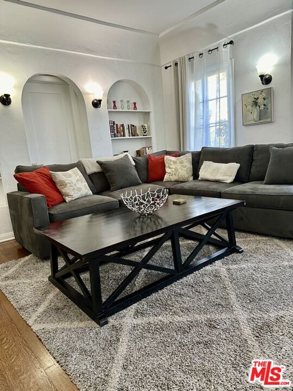 Beautifully upgraded and fully furnished 3-bedroom, 2-bathroom home in the heart of Beverly Grove/Miracle Miles area. This move-in ready residence features, central A/C and heat, a spacious living room with a fireplace and charming French windows, a formal dining room ideal for entertaining, and a large primary suite with peaceful garden views. Kitchen and bathrooms have been tastefully remodeled with modern finishes and are fully equipped. Hardwood floors run throughout. A separate laundry room includes a washer and dryer, and a versatile bonus room offers the perfect space for a 4th bedroom, home office, or den. The detached garage provides ample parking and storage. Step outside to a beautifully landscaped backyard oasis with a tranquil fountain, built-in BBQ, and outdoor dining areaperfect for relaxing or entertaining. Security cameras surround the property for added peace of mind. Located just steps from The Grove, Farmers Market, 3rd Street dining, La Cienega, and more, with easy access to DTLA and Santa Monica.